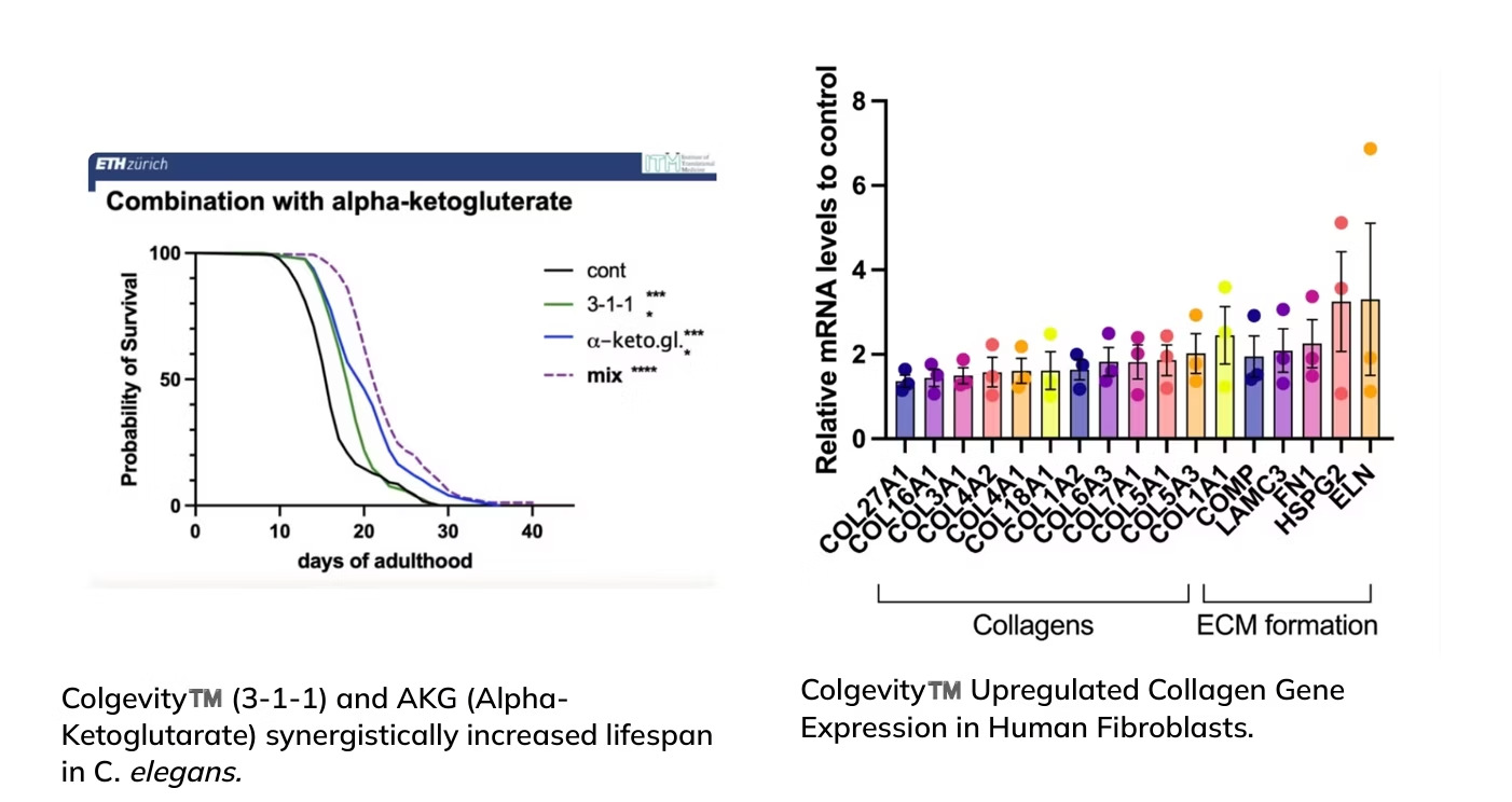 Colgevity™, nyní publikovaný v Natures npj Aging, je patentovaný veganský prekurzor kolagenu, který účinně zvyšuje produkci kolagenu, přičemž studie ukazují 4x vyšší účinnost ve srovnání s konvenčními doplňky stravy s kolagenem.